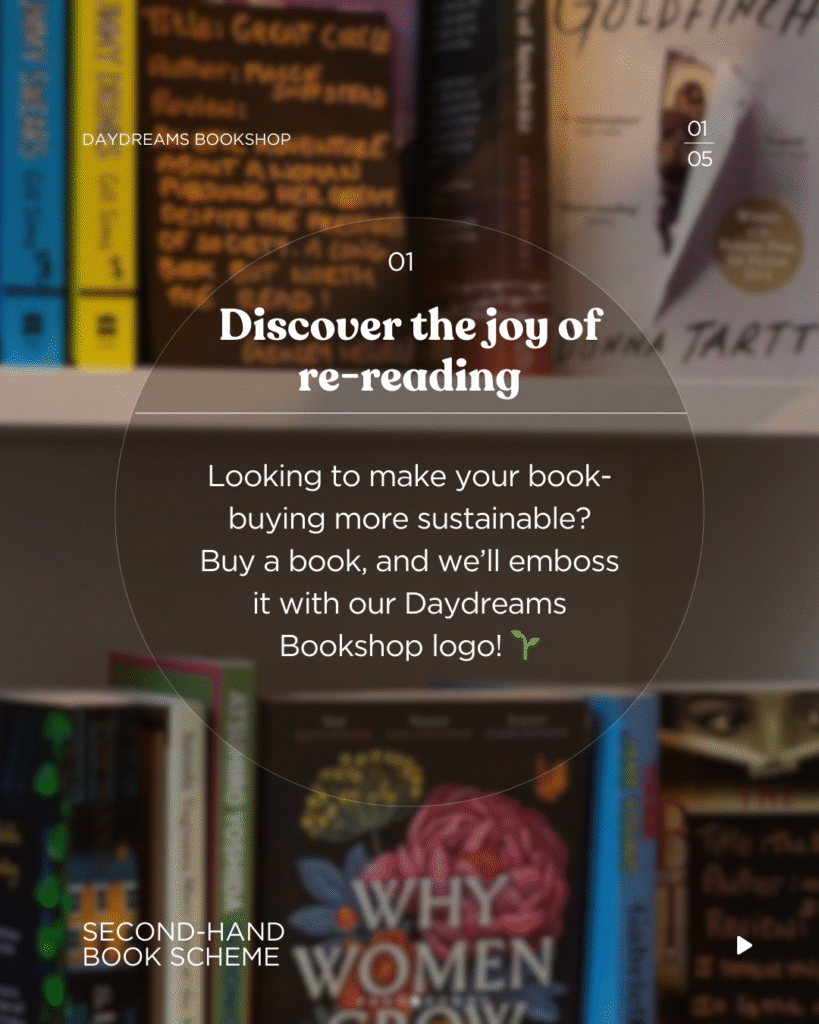 Our Daydreams-embossed pre-loved books have already had a story of their own – and when you bring them back, you’ll receive £1 credit towards your next read.